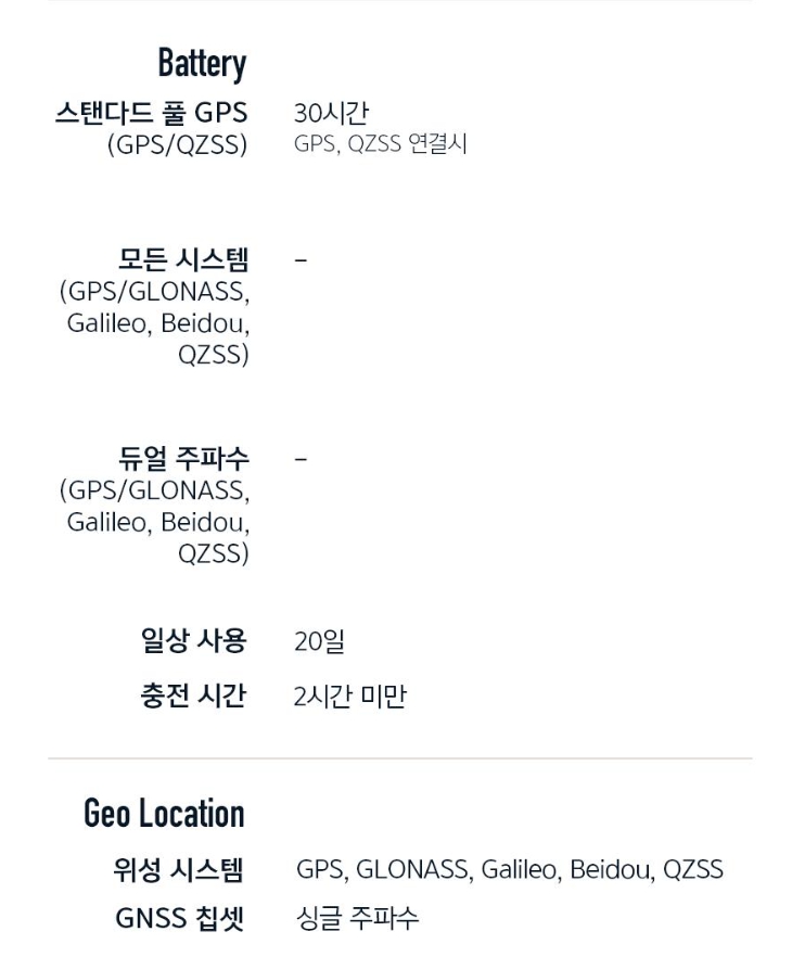 5. 풀 GPS 최대 30시간, 일상생활에 최대 20일까지 사용가능