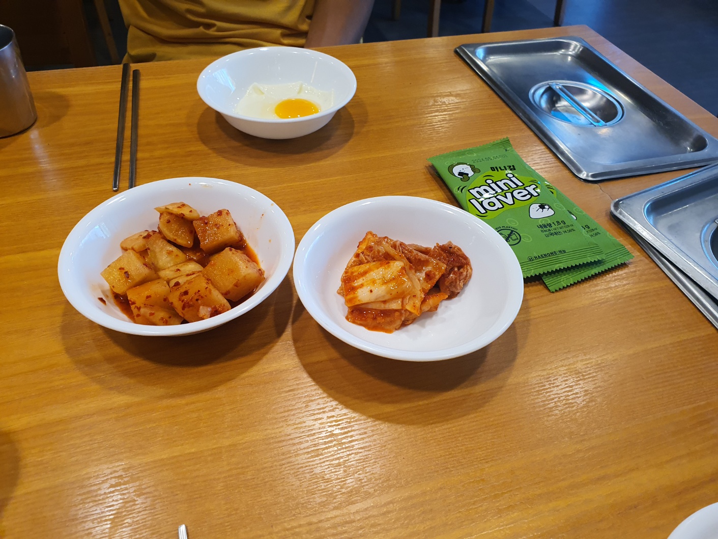 기본으로 계란후라이와 조미김이 메뉴로 나옵니다.