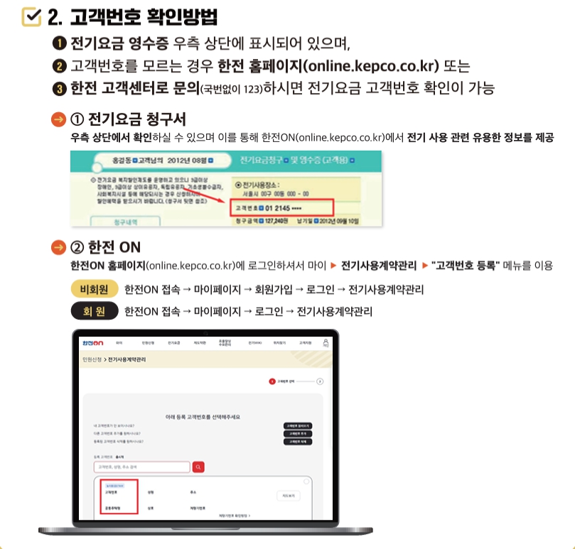 신청하면서 한국전력 고객번호를 반드시 기입해야 하는데요. 확인하는 방법 알려드리겠습니다.