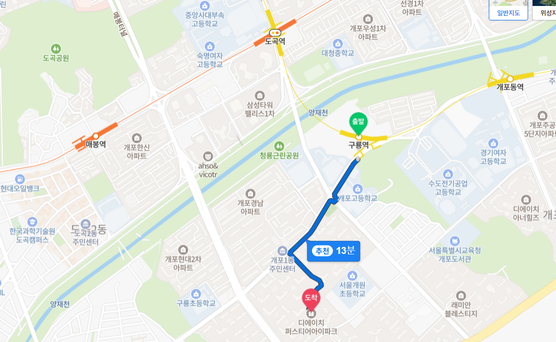 주변에 매봉역, 구룡역 있으며, 구룡역이 도보로 가장 가까운 역입니다.